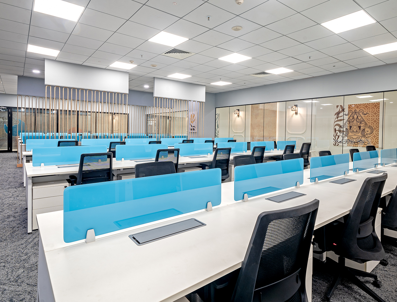 Open workstations, private cabins, collaboration zones, meeting rooms designed around how your teams work.